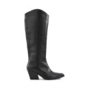 Be a true trailblazer in these edgy knee-high boots. This tall boot features a side zipper, a classic pointed toe with a bold block heel, and subtle western-inspired stitching that adds a touch of vintage detail.