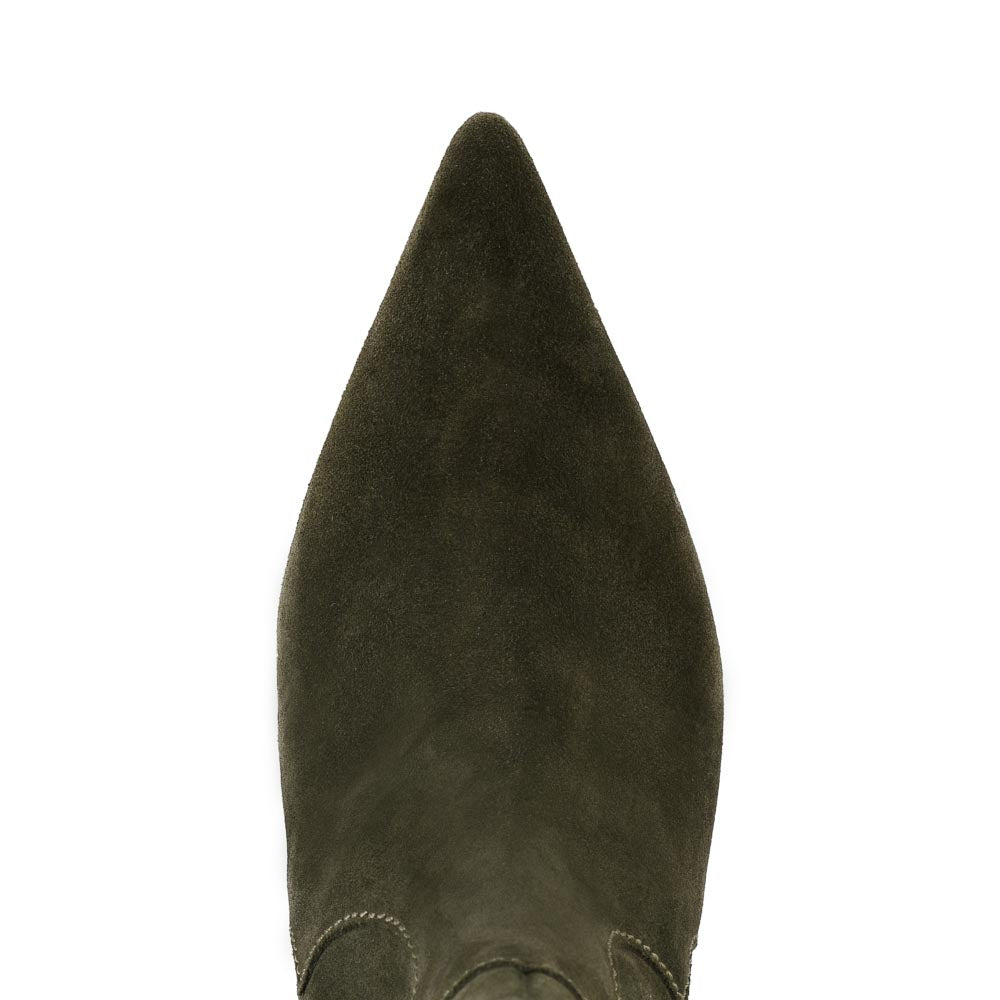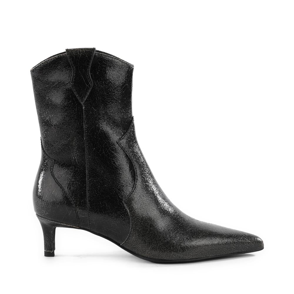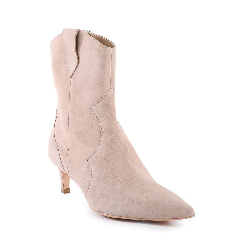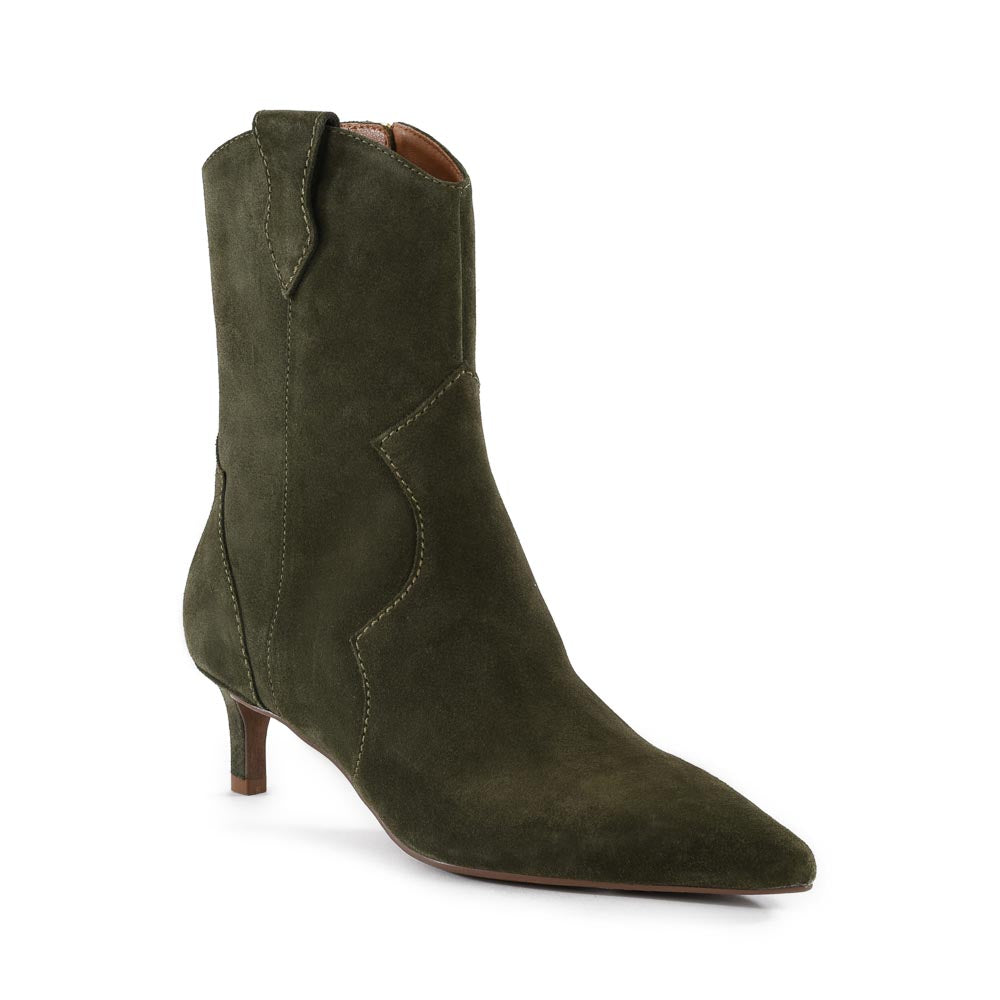A fresh new way to wear Western, these heeled boots feature classic yoke stitching and side pull tabs. A tight-to-the-ankle fit coupled with dramatic pointed toe and modern kitten heel make for a sleek silhouette that’s at ease anywhere you go.