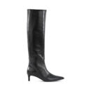 A sleek pointed toe and modern kitten heel mark the defining characteristics of these elegant knee high tall boots. Detailed in luxurious smooth grain leather, it’s a sure fire way to wear some comfortable glamour during cooler temps.